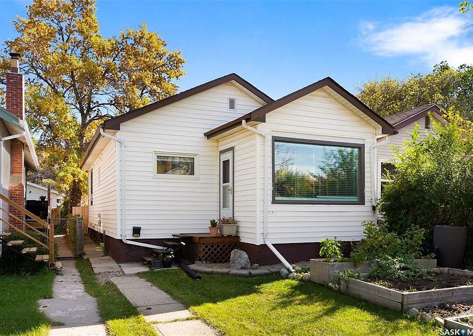 Welcome to 1551 Montague Street – a charming and affordable starter home or revenue property, ideal for anyone looking to enter the market or add to their investment portfolio. Perfectly located on the south side of Dewdney Avenue, the property is located on a quiet block with many owner-occupied homes. It also offers quick access to downtown Regina, the Cathedral area, and the Lewvan for easy commuting north or south. The inviting front porch has been converted into heated living space, adding extra square footage and function. A large picture window fills the room with natural light, while a convenient coat closet provides ample storage. Inside, the cozy living room features hardwood flooring, leading to two bedrooms and a 4-piece bath with an updated vanity. The eat-in kitchen is both practical and bright, offering melamine cabinetry, a double sink, and included fridge and stove. From the back porch, step out into a fully fenced yard complete with a wooden deck and privacy panel, a low-maintenance pet-friendly space, and even a raspberry bush. Garden boxes in the front yard await the green thumb enthusiast. A newer 18’ x 18’ oversized single garage includes a man door that opens directly into the backyard, adding both privacy and convenience. Notable updates include some newer windows, a sewer line replacement with backflow valve (2020), roughed-in plumbing for a basement half bath, a new furnace, updated electrical panel, and shingles on the home (2022). Affordable living awaits!