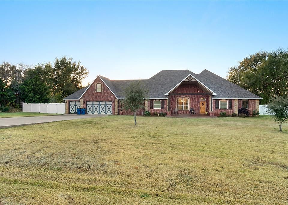 Spacious 5-bedroom, 3-bath home on 1.72 acres in Mustang. Over 3,300 square feet of open living space featuring a bright kitchen with island, stainless appliances, and large pantry. The split floor plan includes a private primary suite with a walk-in shower, soaking tub, and generous closet. Multiple living areas provide flexibility for family, office, or game room use.