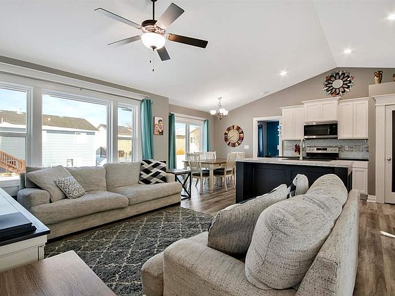 Welcome home! This 5 bedroom, 3 bathroom, 3 car garage home is ready for its new owner! Walk through the front door to a large open floor plan. The living room is spacious with massive windows overlooking the beautiful back yard. Living room is open to the bright kitchen and dining area. The kitchen features a gorgeous island, white cabinets, and pantry. Off the kitchen is the main floor laundry with drop zone for coats and book bags! Large master bedroom features coffered ceilings, window over looking backyard, and master bathroom featuring 2 sinks, walk in shower, and walk in closet! Also upstairs you will find 2 more bedrooms and a bathroom. When heading downstairs you will find a massive family room with built in plumbing for a wet bar. Also in the basement there are 2 bedrooms, a bathroom, and an unfinished possible 6th bedroom with escape window. This yard has sod as well as a sprinkler system! Call for a showing today!!