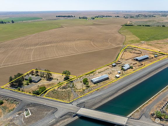 Home, Farm, & Ranch all in one property halfway between Ephrata and Soap Lake! Larger ranch style home on 5.4 usable acres with irrigation, barns, old milk parlor, hay storage, arenas, and pens. The home is 4 bedroom +office, 2 bath home with exceptional primary bedroom & en suite bathroom with tiled walk in shower. Home includes brick fireplace, 2 year old roof, and 4 yr old HVAC. Outbuildings include an old milking barn, hay shed, a large equipment / shop area, and outdoor horse arenas and holding pens. Quincy/Columbia Basin Irrigation is 3.5 acres with 12.25 acre feet of water.