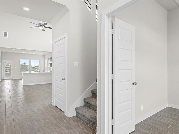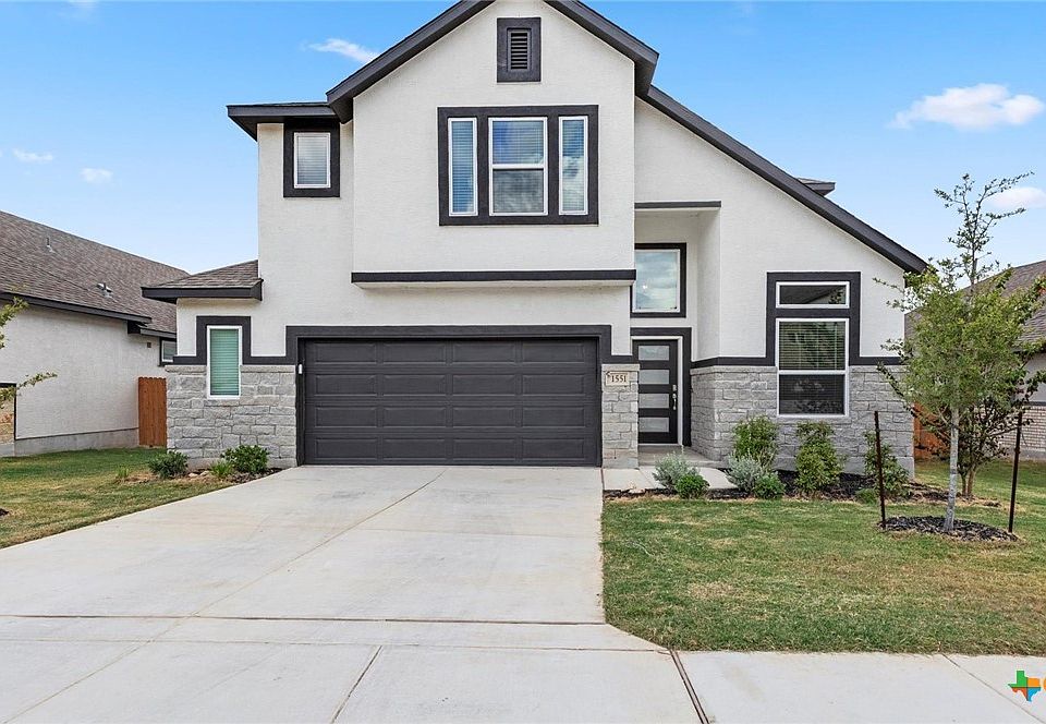 If Home Sweet Home is a combination between Hill Country Views and Modern Living-I've got the home for you! Come admire this stunning 4-bedroom, 3-bathroom home that perfectly blends comfort, style, and functionality. Designed with both family and guests in mind, this thoughtful floor plan features the primary suite and an additional bedroom on the main level - ideal for multigenerational living or a private guest retreat. Step inside to an impressive foyer with soaring high ceilings that flow into the open concept living area, anchored by a sleek electric fireplace and large windows that flood the home with natural light. The gourmet kitchen shines with modern cabinetry, built-in appliances, and elegant countertops - a dream space for both everyday meals and entertaining. Upstairs, you'll find a spacious loft/game room, offering the perfect flex space for movie nights, playtime, or a cozy second living area. Out back, enjoy no rear neighbors, a private backyard, and breathtaking hill country scenery - you can even spot the community pool and amenity center in the distance. The oversized 2.5-car garage (20x30) offers ample room for parking, storage, or a workshop. Located in the sought-after Meyer Ranch community, residents enjoy top-tier amenities including a clubhouse, splash pool, walking trails, firepit, and picnic areas - all surrounded by the beauty of the Texas Hill Country.