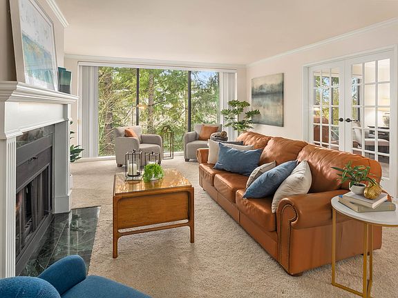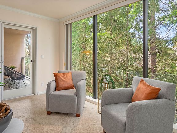Beautiful third floor condo in desirable St. Moritz and next to Mill Creek Country Club. Great light and bright condo with floor-to-ceiling windows. Spacious bedrooms: guest bedroom has a walk-in closet connected to bathroom and sitting space perfect for a den/office. Plush carpet in main living space with a wood burning fireplace with electric option. Deck access from living room and primary bedroom. Large laundry room with storage. Secured lobby with an elevator to take you to your floor. One assigned parking space in garage with ample guest parking uncovered. Just steps away from Private Reserve with walking trails. Minutes from I-5, Mill Creek Country Club, swim club, tennis club, Mill Creek Town Center and more!