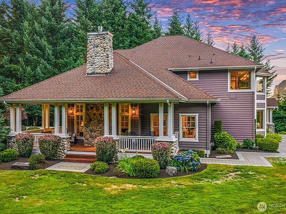 Majestic. Scenic. Elevated. Tucked away on nearly 10 sun-drenched acres this extraordinary Uplands estate offers a rare blend of privacy, luxe & epic views of Mt. Si & Cascades from nearly every room. 4 beds, 3.5 baths, office, media lounge & 3,740 sf of light-filled living. Soaring ceilings, custom wood windows, hardwoods, & a showstopping, magazine-worthy kitchen designed for gathering. 3 ensuite beds=ideal for guests or multi-gen living. Dreamy primary w/ spa bath, walk-in, sitting area, & stunning views. 3-car garage + toy garage. Indoor/outdoor spaces flow seamlessly—perfect for entertaining, relaxing, or watching the sun rise & set. Thoughtful finishes throughout. Mins to trails, river, DT NB & I-90. More than a home—it’s a lifestyle.
