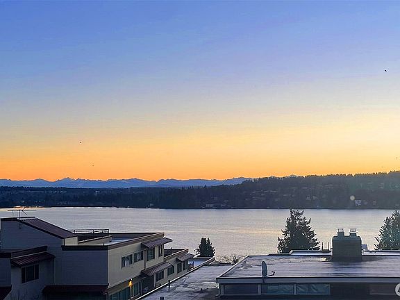 Experience breathtaking sunrises over the Cascades & Lake Washington in this stunning 2-bed, 2-bath condo, nestled in a secure 6-unit building w/elevator access. Bright, open floor plan features floor-to-ceiling windows, showcasing spectacular lake and mountain views. The gourmet kitchen is a chef's dream, equipped w/ SS appliances, quartz countertops, & bar seating. Enjoy meals in the dining room w/ a slider that leads to your private view deck, or relax in the cozy living room centered around a gas fireplace. Both spacious bedrooms offer comfort, w/ the primary featuring an ensuite bath. Includes all appliances & two-car tandem garage w/tons of storage space. 2 additional parking spaces at Sheridan Market for Owners guests.