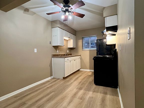 Spacious, first floor, freshly painted, 1 bedroom apartment. Brand new vinyl plank flooring throughout. Newer appliances (stove, refrigerator, and hood range). On-site coin laundry. Bathroom recently remodeled with new flooring, vanity and toilet. Ceiling fans throughout, along with wall AC unit. Each unit is equipped with their own heating system and hot water tank. Pet Friendly, pet fees apply. $2,200 to move-in (ONLY $2,000 if you move-in by 12/31/25).