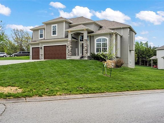 A CORNER LOT IN BEAUTIFUL PINEHURST ESTATES WELCOMES YOU TO THIS 5 BEDROOM 4 BATH TWO STORY HOME ON CUL- DE-SAC!!! The curb appeal is stunning with the nicely kept grass, landscape, stone and front entry. Come inside to an open floor plan that offers wood floors throughout the main level. The open kitchen and dining area has a large walk in pantry with it's own full size refrigerator along with large island and seating as well as easy access to the recently stained deck. The nice size living room adorns beautiful wood shelving on both sides of the fireplace. Also included on the main level is a mudroom, half bath and formal dining area or sitting room. As you head upstairs you'll be amazed at the bedroom/office/den area that this amazing floor plan has to offer. Perfectly situated with it's own bathroom, closet and fireplace this area is whatever you make it. Making your way to the second level you'll be amazed with the large master suite with his and her closets, double vanity, soaker tub, walk in shower and a double sided fireplace. Another bedroom with it's own bathroom and two additional bedrooms with a Jack-and Jill bathroom along with hallway laundry complete the second level. An Additional 1400 Sq. Ft. of space in the Basement is an optional finish that has amazing high ceilings, walk out basement, Radon mitigation system, water softener, tankless water heater and stubbed for a bathroom and possible 6th bedroom. The home comes with Pre Wired Security and 3 cameras. You'll love the custom shades and plantation shutters that accent the main floor living area. Great neighborhood that is close to amenities at the Legends and other surrounding areas. Come take a look, fall in love and make this house your home.