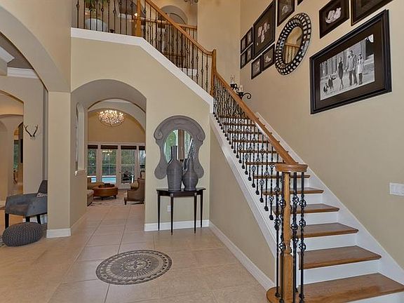 Beautiful custom Hannah Bartoletta home in gated community of Avocet in Fishhawk Ranch! This is a home of distinction, which will be obvious from the moment you drive up to beautiful elevation, paver drive, courtyard entrance, garage, plus tile roof! Upon entering stunning foyer w/grand chandelier you'll be captivated by fabulous staircase & view of beautiful pool area! Extensive upgrades in home include crown molding, wide base boards, plantation shutters & high end fixtures! Formal, step-down living room boasts magnificent fireplace & wall of windows, while formal dining room features large niche & arched entryways. Open floor plan is perfect for entertaining w/step down family room boasting 2014 hardwood floors, soaring ceilings & French doors to lanai! Wait until you see gourmet kitchen showcasing custom wood cabinets w/rope crown, 5-space gas-burner cooktop, double ovens, granite counters w/travertine backsplash & large breakfast nook w/view of pool & wooded lot! Working from home will be a pleasure in large office w/tray ceiling next to master. Master retreat features sitting area & door to lanai for relaxing nights in spa, plus bath w/dual vanities, wooded view & large walk-in closet w/his & hers sides! Expansive bonus/media or 5th bedroom, plus 3 bedrooms & 2 baths are upstairs w/2 separate staircases. You'll love the beautiful brick paver lanai featuring built-in grill, sink area, large heated pool & spa! Home backs up to conservation w/professional landscaping & access to walking trail!
