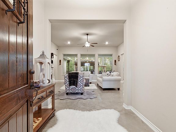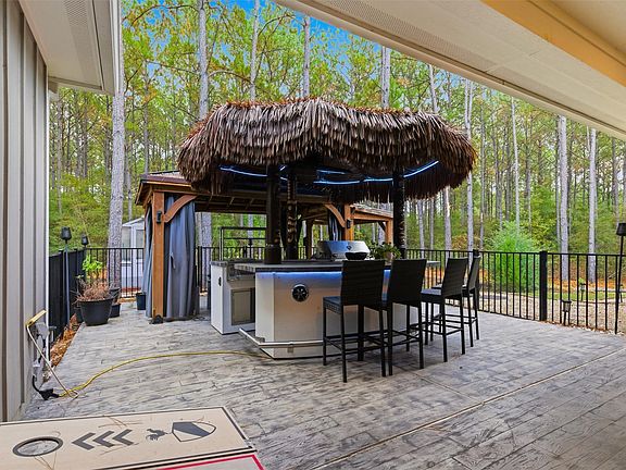Set on a beautiful 1.5-acre wooded lot in Republic Grand Ranch, this stunning one-story home offers the perfect blend of space, privacy, and modern comfort. The open living area features elegant lighting, warm tones, and seamless flow into a chef’s kitchen with granite counters, stainless steel appliances, and rich wood cabinetry. The spacious primary suite includes dual sinks, a soaking tub, and a large walk-in shower with tile surround and glass enclosure. Secondary bedrooms and a private study with double doors offer ample versatility for work or guests. Step outside to an entertainer’s paradise featuring an expansive covered patio with a tiki-style outdoor kitchen and bar, where laughter, good food, and quiet evenings can unfold beneath the trees. Additional parking and an energy-efficient design add everyday convenience. Enjoy country serenity with modern luxury at home. Schedule your showing TODAY to experience Republic Grand Ranch living at its best!