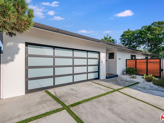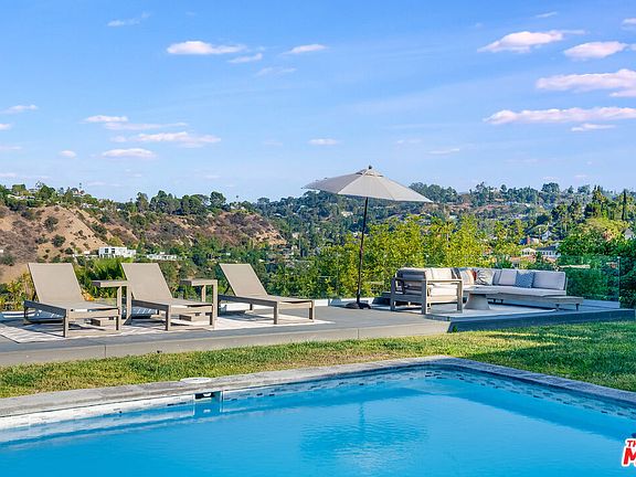 Sophisticated Modern Above Sherman Oaks. Prime location in great cul-de-sac. Thoughtfully remodeled with minimalist vibe, this single story home features balanced warm/cool monochromatic scheme and engineered flooring throughout. Open living spaces include center media wall with cantilever shelving and fireplace, sleek kitchen with quartz surfaces, stainless steel appliances, skylight, open shelving, breakfast bar and dining area. Bi-fold patio doors take advantage of outdoor living with spectacular uninterrupted sightline to turquoise pool with waterfalls, large covered patio, sundeck and glass fence to enjoy breathtaking canyon vistas and city lights. Main bedroom shows off designer en suite with streamlined double vanity, wet room tub and spa shower, walk-in closet and access to backyard. Family baths have contemporary fixtures and faucets. Newly enclosed front patio, frosted glass garage doors and horizontal redwood fencing.