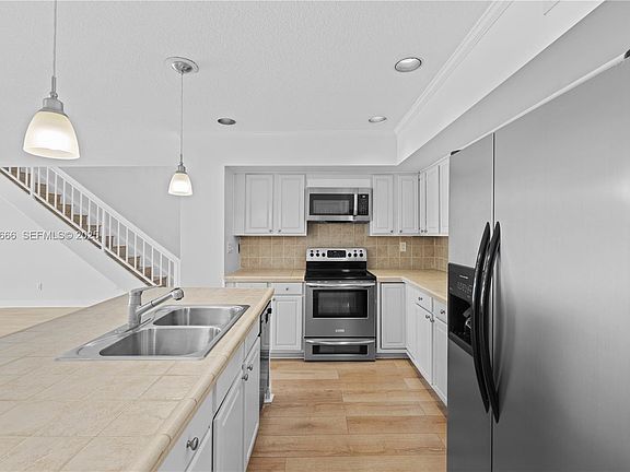 Welcome to 15518 Braemar Ct, a beautifully appointed townhouse in the sought-after Miami Lakes area. With 2,190 square feet of living space, this spacious home offers the perfect blend of comfort and style. The thoughtfully designed layout includes four generously sized bedrooms, three bathrooms, and a total of five rooms to customize to your lifestyle needs. The main living areas showcase sleek hardwood floors that add warmth and elegance, creating a seamless flow throughout the space. The primary bedroom features a luxurious walk-in closet, providing ample storage and a touch of sophistication. Step outside to the inviting porch, ideal for enjoying your morning coffee while soaking in the serene surroundings or unwinding in the evenings. The home's natural light creates a bright and welcoming atmosphere, making it an excellent space for entertaining or simply relaxing. This property offers a convenient and comfortable lifestyle in a prime location, with easy access to nearby shopping, dining, and leisure options. Whether you're starting a new chapter or looking for a perfect place to call home, this townhouse is a charming and versatile choice. Don't miss the opportunity to make 15518 Braemar Ct your new address. Schedule your private showing today and discover all the possibilities this exceptional townhouse has to offer!