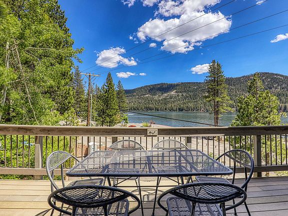 Maybe the best views of any Donner Pines West condominium! Panoramic views of Donner Lake and surrounding mountains from the living room, bedrooms, and two decks! This condominium complex offers it's very own gated private beach with dock and gazebo. This unit has a one car garage located directly below the living quarters. The condo has been extensively remodeled. Kitchen and baths with laminate floors and tile. There is also a laundry room. Additional parking is right outside the front door. This property offers all day sun from the two south facing decks. There are no other homes in the view, just the lake and mountains! The location is unbeatable with easy access to the freeway west as well as 5 minutes to fine dining and shopping in historic downtown Truckee. It is centrally located to most major area ski resorts, Boreal, Northstar, Palisades, Alpine and world class cross country skiing at Royal Gorge. Summer offers hiking, biking, sailing, boating, and swimming literally right out your door!