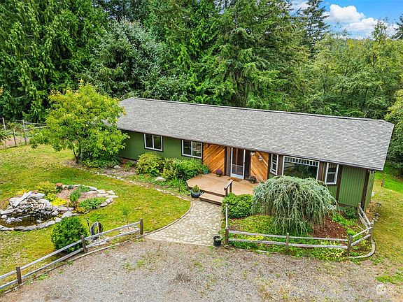 This spacious home on a 2.48 acre parcel in Olalla offers the perfect blend of privacy and convenience. Located minutes from Gig Harbor and a quick 2 minute drive to Hwy 16 for easy commuting to Bremerton and Tacoma. With 2,880 square feet of daylight living space, there's ample room to grow, especially in the partially finished basement. The main floor features an open concept design, including 3 bedrooms and 1.75 baths. Downstairs you'll find 2 bonus rooms ands a family room, along with 3 unfinished framed rooms, one plumbed for a bathroom, providing great potential for customization. The home features a newer roof and is surrounded by mature landscaping, offering both beauty and privacy. The fenced play area adds a nice touch.