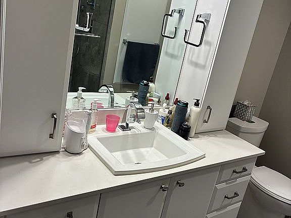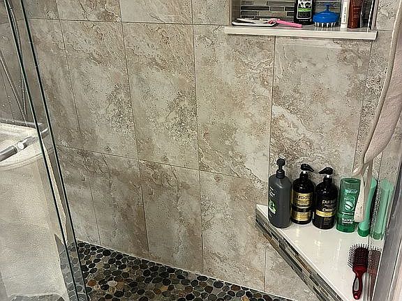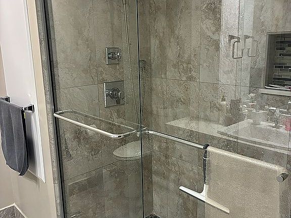 • Shared full bathroom features a fully tiled shower with frameless glass enclosure and a soaking tub with water heater and three exquisite niches for candles, aromatherapy and décor. The bathroom has ample recess lights with dimmers. It also has custom wood cabinets with a large towel closet.