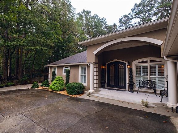 Spacious ranch at the end of a cul-de-sac in the highly coveted Maple Ridge Community within the award-winning Peachtree Ridge school cluster, this home has it all! This home was completely renovated down to the studs in 2018. The double iron front doors welcome you to a large foyer with a lighted barrel ceiling and a chandelier. An arched opening dining room boasting 10 foot ceilings and a matching chandelier is the perfect place to host an elegant dinner. The large living room across from the foyer has peaked ceilings, and a beautiful view to the private backyard and saltwater pool. The upgraded kitchen showcases maple graphite custom cabinets with glass door accents, marble countertops and a limestone backsplash. All stainless appliances remain with the home, including the refrigerator which was purchased in September of this year. All bathrooms have been updated with tile, new vanities with granite tops, shower doors and Kohler toilets. The family room has a marble fireplace with gas logs and Anderson sliding doors for additional access to the 40x14 composite deck. The oversized master includes tray ceilings and access to the deck and pool, as well as a spacious master bath with walk in stone shower, double vanities, and his and her closets with built-ins. Two additional bedrooms, an office/flex room and second full bath complete the main home. Attached via a breezeway is a pool house that has a large workspace that could be converted to a secondary kitchen, as well as a forth bedroom, full bath and plenty of storage. This home boasts tile throughout the entire home, plantation shutters and blinds, smooth ceilings and detailed crown molding and millwork that adds to the elegant feel of the home. Outside renovations in 2018 include: new roof, cement siding, double pane windows, HVAC system with 4 zones, new garage doors, completely new septic system, sprinkler system in front and rear of home, landscape lighting, complete yard fencing, heated saltwater pool and spa, fire pit and an added concrete pad that is the length of the far side of the home that can accommodate RV parking, boat storage or a large dog run separate from the pool area.