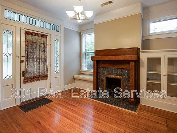 Amenities: dishwasher, disposal, garage, pet friendly, neutral wall colors, exposed brick walls, tile flooring, split-bedroom floor plan, front porch, office, deck, french doors, beautiful hardwood flooring, central heat & air, ceiling fan(s), formal dining room, fenced-in backyard, dressing closet(s), washer/dryer full size, parking - 2 car garage, shower/tub combo, blinds, close to rhodes college, located in midtown, fireplace - wood-burning, storage - basement, ceiling fan(s) w/ remote, built in bookcases, custom closets with built ins, historic building, located in evergreen historic district, historic neighborhood, close to crosstown concourse, glassed-in shower, ring camera, driveway, clawfoot tub