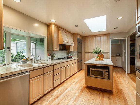 Remodel, enjoy or expand this stately Ranch-style home on a wide, child-friendly street just 0.3 miles to Oak Elementary school. The entire block features generous lots with spacious yards and mature trees. The ample lot provides space to play, build an outdoor kitchen, or expand your living area to accommodate a growing family. Lovingly maintained, this home has a separate family room off the kitchen with sliding doors to the backyard, a dining/living room with fireplace and space for entertaining, an inside utility/laundry room, hardwood floors, and an expanded master bedroom with remodeled bath. The updated kitchen boasts stainless appliances, a center island, double ovens, a skylight, a breakfast bar and a gas range. Located on a quiet street close to parks, schools, and Los Altos and Mountain View amenities. Close to commute routes, retail shopping, and top Los Altos schools (Oak, Blach, Mountain View Buyer to verify).