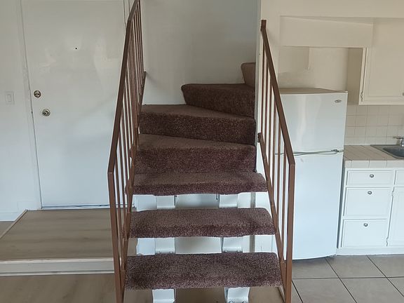 New flooring and freshly painted loft apartment. Unit features- balcony, loft/bathroom/closet upstairs. Living area and kitchen downstairs. Electric heated fireplace. Stove and refrigerator included. 1 carport parking space. Building- well lit at night, security cameras, gated entry, laundry facility. Quiet building with long term tenants.