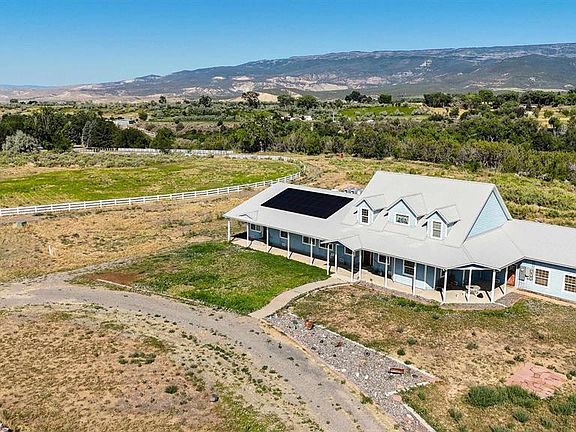 Welcome to Dear Acres! This remarkable property truly has it all—and more. Nestled in a private subdivision of just three lots, you’ll own two of them, giving you unmatched space and privacy. Behind you, the Grand Mesa rises in all its beauty, while sweeping views of the valley, Uncompahgre Plateau and the San Juans stretch out before you. The property is partially fenced with an inviting split-rail vinyl fence, dotted with mature trees and partially forested. Walking paths wind through the back acreage, creating a relaxed, park-like setting. Located just a mile from the Town of Cedaredge, you’ll enjoy the convenience of nearby amenities while savoring the peace of country living. Outdoor features include: 7 big-gun sprinklers, 2 irrigation water holding tanks, plus above-ground storage for easy watering. Fruit trees galore: 9 apple, 4 peach, 1 cherry, 2 pear—and room for more. Insulated storage shed with 100-amp power service. Covered front and back porches, oversized garage, metal roof, and sprinkler system. Inside the spacious home, every window frames a stunning view. A thoughtfully designed lock-off apartment (2BD/1BA, with full kitchen and laundry) offers endless possibilities—whether as guest quarters, an Airbnb, or a long-term rental. Additional highlights: Generac solar system with battery backup—stay powered and keep costs low. Newer Halo whole-house water system. Reverse Osmosis at both kitchen sinks. Ample storage throughout. Whether you envision a horse property, a gentleman’s hobby farm, a small winery, event venue, or simply a tranquil country retreat, Dear Acres is ready to make those dreams a reality. Private, serene, and surrounded by views, both day and night—this property is truly one of a kind!