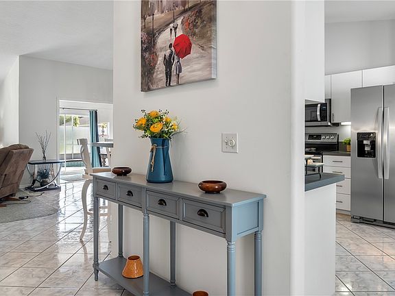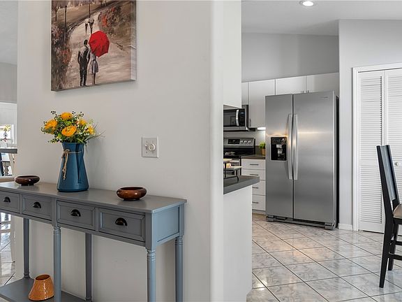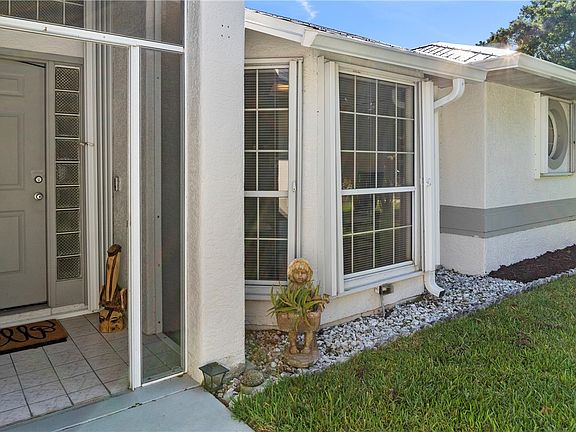 2023 Metal Roof. CBS home comes fully furnished & ready to move in. Spacious 42x21 pool deck has new glass table (seats 8) with 14' telescopic umbrella for entertaining. Saltwater pool has new robotic vac & brand new heater. Newly tiled bdrms & mstr bath shower. SS appliances, commercial size washer/dryer, ADT security system w/5 perimeter cameras. Upgraded irrigation system waters newly sodded yard. Full central vac. Fully vented roof, thermal pane tinted windows & accordian hurricane shutters. Don't miss this opportunity! rmszappx&sub2err.