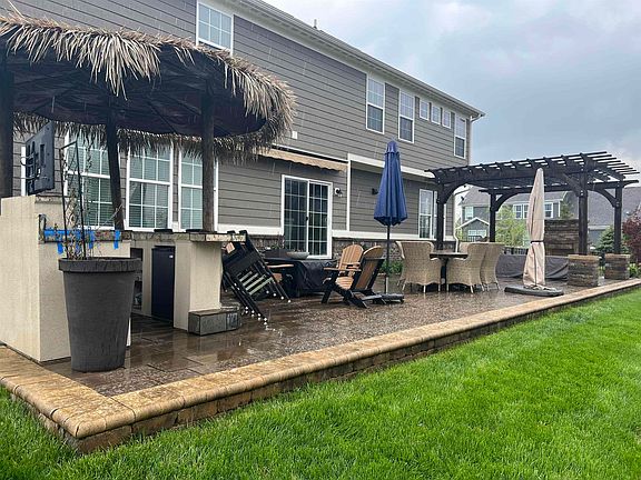Stunning amount of landscaping with outdoor fireplace/ bar with refrig and outdoor grill, television and much more, first level is wood floors along with master BR and loft, granite counters, epoxy coating on garage floor, two story entry foyer, basement family room, plumbing is in for full bathroom. Buyer and buyers agent shall verify the accuracy of all information here-in