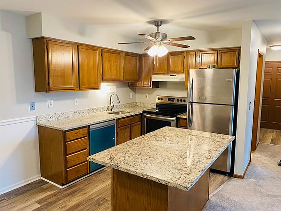 Beautifully updated 2 bedrooms/2 full baths Ranch style-main level condo. Spacious bedrooms and granite throughout the kitchen and bathrooms. Very clean! New carpet, fresh paint, new appliances and window treatments. One car port included. Association fee and water included in rent. No stairs involved! Walking distance to shopping plazas and restaurants. With Chippewa district schools!