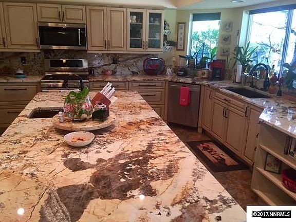 Stunning home with vaulted ceilings through out, fully remodeled gourmet kitchen featuring 15" extra deep cabinets, granite counter tops, huge island with bar sink, beverage cabinet, 2 dishwashers, enclosed double trash holder, instant hot water, and recessed lighting. Large family room with 3 ceiling fans and pellet insert that heats the entire home. Master bedroom with vaulted ceilings, ceiling fan, garden tub, walk in closet and 14 x 24 deck, Downstairs bedroom or guest room with remodeled bathroom.