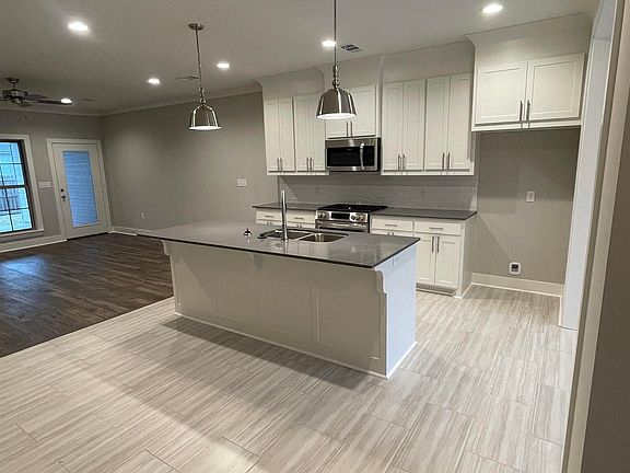 - Features: Cabinets Custom Built, Granite Counters, Counters Solid Surface, Kitchen Island, Pantry