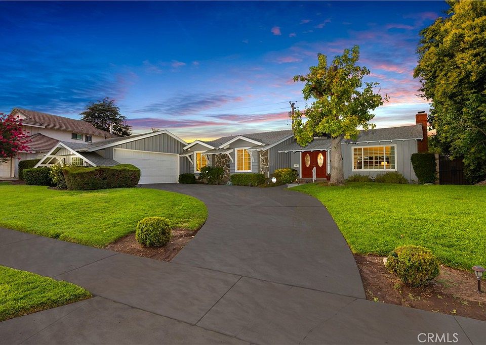 Discover the perfect blend of modern convenience and classic charm. This spacious home features 4 bedrooms and 2 full baths, including a master suite complete with its own en-suite bath, providing a retreat-like experience for every member of the family, this property is beautiful and can accommodate modern lifestyles, with one bedroom easily adaptable to an office, catering to the growing trend of remote work, the layout seamlessly blends comfort with practicality. Step into the generous family room, enhanced by a charming fireplace that sets the scene for relaxation and socializing. The appeal is also enhanced by the impressive mid-century modern flair of the large kitchen, complete with a spacious island, and an adjacent large dining area, perfect for hosting cherished family meals. The residence boasts newer plumbing and electrical systems, including a 200 amp panel, along with a recently replaced roof, guaranteeing a future of peace and convenience. Exemplifying stunning curb appeal, the meticulously landscaped yard captures attention, with fully automated drip systems tending to the delicate blue ribbon roses. Indoors, newer Milgard windows soak in the interior in natural light, seamlessly connecting the inviting interiors with the beauty of the outdoors. In addition to new carpet and fresh paint inside and out, this property offers both a 2-car garage for secure parking and a generous covered patio graced by a beautiful fountain, setting the stage for delightful outdoor gatherings. Unique opportunity to enjoy modern living amidst classic elegance and charm. Don't hesitate to seize the chance to make this exceptional property your forever home!