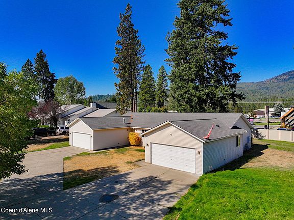 Discover this clean 2003 single-level duplex in the heart of Rathdrum. Each side features 2 bedrooms, 2 bathrooms, a spacious living area, and access to a private deck with peaceful tree and mountain views. Both units include an attached 2-car garage, and the property offers potential space to add a shop. Conveniently located within walking distance to local dining, shopping, and schools, this property combines comfort, functionality, and investment potential in a prime location.