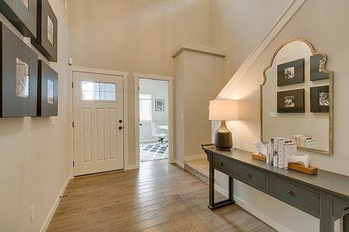 A wonderfully spacious and luxurious 5 bed, 2 bath residence in the private Meadowdale Vista development. Built in 2014, it features wood floors on the main floor, an open kitchen with granite counters, SS appliances, high ceilings, smart lighting, and surround sound speaker system. Find 4 bedrooms upstairs with an office/guest room on the main. Master suite has soaking tub, separate shower, and custom walk-in closet. Backyard overlooks greenbelt. Near retail, highways, lots of storage space.