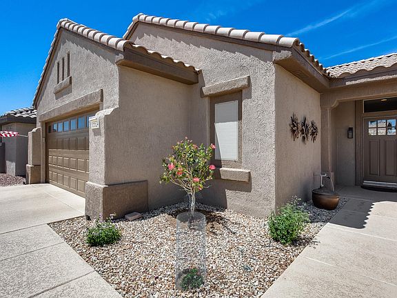 This beautiful 2 bedroom 2 bath home has beautiful upgrades, is clean, Large bedrooms, open floorplans, and gorgeous kitchen! Kitchen has beautiful cabinetry, and quartz countertops(in bathrooms as well!) A formal dining area will suit your elegant dining needs! Big beautiful windows allow for plenty of natural lighting! Master opens out on to back patio. Backyard is large and comprised of a view fence covered patio, mature trees, shrubs and decorative gravel! See this home today!