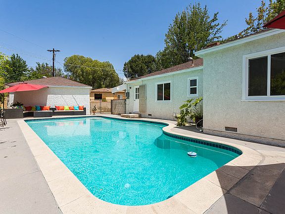Renovated Mid-Century home located in prestigious MIDVALE ESTATES just blocks from million $$$ homes! Single-story modern architectural remodeled home adjacent to Sherman Oaks. Light & bright with open floor plan and completely redone throughout, new exterior paint, new modern front door, restored original hardwood flooring, new recessed lighting, new baseboards, & custom interior paint. Original brick fireplace is the focal point of the spacious living room/dining room bathed in natural sunlight from the large picturesque window. Chef's kitchen offers new white shaker cabinetry, Carrara-style, Quartz counter tops, mosaic tiled backsplash, new Whirlpool stainless steel appliances, 5-burner stove, new utility barn sink, & side-by-side refrigerator. The contemporary full bathroom is complete with 2 SHOWERS & new fixtures, newly tiled walk-in shower & separate full tub & shower combination, with Quartz vanity. Three bedrooms offering plenty of closet space and smooth ceilings. Additional features include: copper plumbing, central A/C & heat, 220 electrical panel, energy-efficient double pained windows, & functional laundry area with new LG stackable washer and dryer. Private rear yard with sparkling pool is perfect for entertaining family & guests. Two-car detached garage with newer automatic door & deep driveway with plenty of room to park all of your vehicles. EASY ACCESS to 405 and 101 freeways, Sherman Oaks Galleria, Ventura Blvd and Metro. A true gem that won't last!
