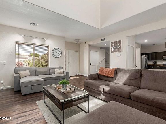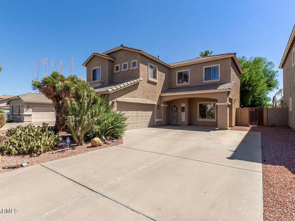 Welcome home to this beautifully maintained two-story in a quiet Surprise neighborhood with just a $25/mo HOA! The open kitchen features granite counters, a center island, and stainless-steel appliances overlooking the living room with cozy fireplace and soaring ceilings. A versatile loft upstairs offers the perfect space for an office or teen hangout, while the primary suite includes a private balcony, dual sinks, and walk-in closet. Enjoy a low-maintenance backyard with covered patio, outdoor fireplace, and storage shed. Added peace of mind with a new 2024 hot water heater, leased solar, and newer mechanicals. Conveniently located near top-rated schools, parks, and shopping. This move-in-ready home blends comfort, charm, and value!