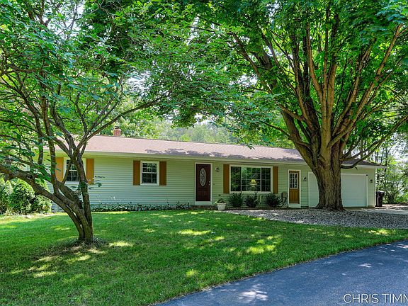 This four bedroom, two bath ranch home on over two acres is a must see! Entering the driveway, you will find a picturesque, shaded yard with mature trees creating a quiet, private setting. Inside, the home has been lovingly cared for and can be seen in the updates throughout. The kitchen includes beautiful Kraftmaid cabinets with slow-close features, stylish flooring, and newer appliances. The main floor bathroom and bedrooms include new vinyl plank flooring and fresh paint. There are large living spaces on both the main floor and lower level. The walkout basement includes a spacious laundry room/second bathroom and a sizable amount of storage space.