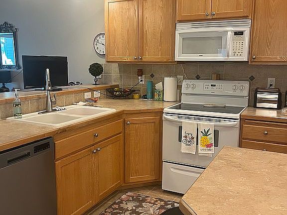 Butler pantry, golf green on back patio, area for small veggie garden, gas fireplace, sink in 2 car garage