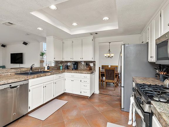 Relax with the whole family at this peaceful place to stay. This bright and spacious home has Canyon Views & back gate access to well-maintained Walking & Biking Trails. Close to popular shopping centers, parks, schools, and restaurants & only 8 miles from the beach! 4 Bedrooms, and 3 bathrooms; 1 bedroom and bathroom is on the main floor. The primary suite has a large canyon view deck. The open floor plan with vaulted ceilings & large windows provides an abundance of natural light. Home is equipped with solar panels.