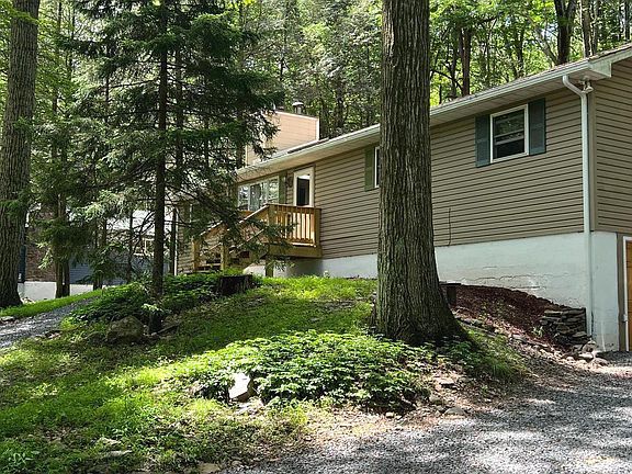 Welcome to 1553 Locust Lane, a charming single-family ranch home nestled in the serene Locust Lake Village community of Pocono Lake, PA. This spacious 4-bedroom, 2-bathroom home offers 1,320 square feet of living space on the main level, perfect for relaxation and entertainment. The inviting living area features a cozy wood-burning, stone fireplace, ideal for chilly evenings. A partially finished basement provides an additional 690 square feet of space that can be used as a home office, gym, game room or recreational area. The possibilities are endless! The garage is not deep enough for a car, but is perfect for bike and kayak storage. Situated on a picturesque 0.46-acre wooded lot, the home offers both privacy and a peaceful natural setting. The gravel driveway accommodates up to four vehicles, making it convenient for residents and guests. Built in 1966, the home is heated by electric baseboard heating, and while no cooling system is specified, the surrounding trees help provide natural shade and comfort. As part of Locust Lake Village, residents have access to an array of community amenities, including a clubhouse, 3 lakes with beaches, 1 fishing lake, multiple picnic areas, tennis and basketball courts, and a playground. Outdoor enthusiasts will enjoy the nearby beach access for swimming, fishing, and kayaking/paddleboarding. The community is short-term rental friendly, and with the township recently removing the cap on rental licenses, this is a fantastic opportunity to own a home that offers both fun and income potential. Whether you're looking for a peaceful retreat, an income-producing rental, or a year-round residence, this home offers the perfect blend of comfort and investment potential. Don't miss out on this incredible opportunity—schedule your private showing today! **NOTE--The septic is 1000 gallons which is adequate for private home or long term rental per the township. A short term rental can ONLY be 3 bedrooms**