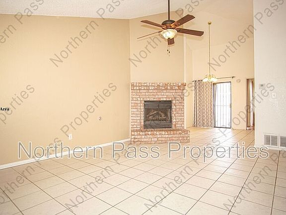 This beautiful 3-bedroom duplex is located on the east side of El Paso. The living area features high ceilings, ceramic tile, and a fireplace. The dining area is open to the kitchen and has access to the backyard. The kitchen is updated with granite-like countertops, a tiled backsplash, and black appliances. There are 3 good size bedrooms all with high ceilings and good closet space. The primary bedroom is located at the back of the home and has side-by-side closets, laminate flooring, and its own private access to the backyard. There is a large backyard that is perfect for all your outdoor activities and has a storage shed for your personal use! Let's not forget to mention that the home has Refrigerated AC!
