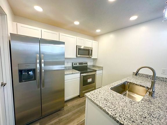 - Exterior features: 17 parking spaces, 2 full bathrooms, 3 bedrooms, Available now, Brand new, Breakfast bar, Built in 2023-2024, Engineered LVP flooring through-out, Large windows for ample amounts of daylight, No Carpet, No lawn care, Tenant responsible for power in their name, W/S/T: $65 a month, all stainless steel appliances included, brand new appliances, brushed nickel fixtures, close to shopping, exterior storage, granite countertops through-out, shower/tub combo