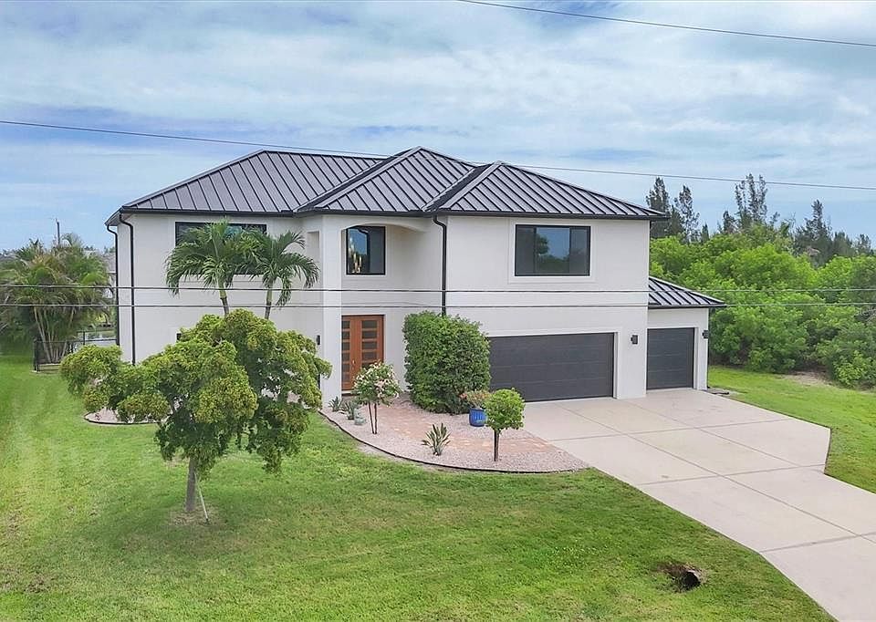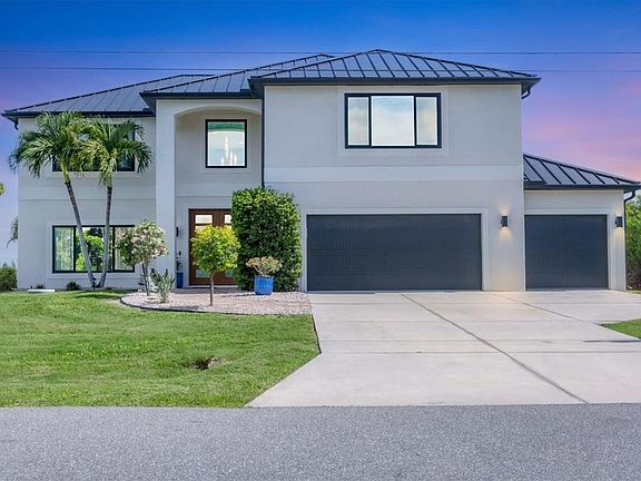 Significant price adjustment makes you question why wait to build when you can move right into this like new home. All since 2023 - New 24 gauge metal roof, impact windows/doors, garage door, HVAC, pool cage, LVP flooring in all bedrooms, wood plank look tile other areas, spray foam insulation in attic (seller's says reduced elec. bill $100), It feels like home as soon as you step through the custom double door entry of the WATERFRONT, 4 bedroom, 3 CAR GARAGE home! Located in sought after Sec 93 of South Gulf Cove. Noticing first the custom designed Italian glass light in foyer, wood plank look tile on the diagonal throughout the downstairs, custom updated kitchen with wood cabinets, granite counters and spacious island with breakfast bar fully applianced including commercial fridge/freezer. Directly off of kitchen is dining room and at front of home formal living room. From kitchen you'll overlook your large family room with sliders to pool and lanai. Rounding out the practicality of the downstairs is the 1/2 bath at hallway from foyer to kitchen. Talk about great home for family or large gatherings, this one more than fits the bill. Up the beautiful redone staircase you'll find the primary suite with organizer walk in closet and en suite bath that is bright and beautiful walk in shower w/frameless glass door, dual sinks and private water closet and wood plank look tile on diagonal. The remaining 3 bedrooms are situated nicely around the staircase, two with built in closets and one with walk in closets. At the very front of the home upstairs is a large "bonus" room, perfect for media room, game room, second family room, endless choices. Also on second floor where it belongs for ease of use, is the laundry room that includes utility sink. Lanai has new screen cage with Picture window screen facing your waterfront canal and dock, that will take you out to the Lagoon if you just want a quick fishing trip or through the lock onto the Myakka River, then Charlotte Harbor or to the Intracoastal and Gulf of Mexico. Desirable South Gulf Cove waterfront community offers a park, boat launch (for a fee) walking paths and so much more, it is also appx. 15-20 minutes to Boca Grande beaches and Englewood (Manasota Key) beaches as well as 10-15 minutes to golf courses in the area. If you're looking for YOUR Florida paradise with lots of room for family and friends, do yourself a favor and call to see this one now!