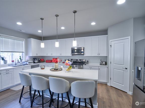 This house comes with a REDUCED RATE as low as 5.5% (APR 6.02%) or VA 4.99% (APR 5.47%) as of 03/21/2025 through List & Lock™. Preferred Lender. This seller-paid rate-buydown reduces the buyer’s interest rate and monthly payment. Terms apply, see disclosures for more information. Better than new, this beautifully upgraded home offers 5 bedrooms, including a versatile guest suite option, & 3.5 baths. The gourmet kitchen shines w/ quartz countertops, a large island, a full-height tile backsplash, upgraded soft-close cabinets, & premium stainless steel appliances. Additional upgrades include custom blinds, ceiling fans in every room, garage storage racks, & a newly added shed for extra storage and More!!. Conveniently located near JBLM.