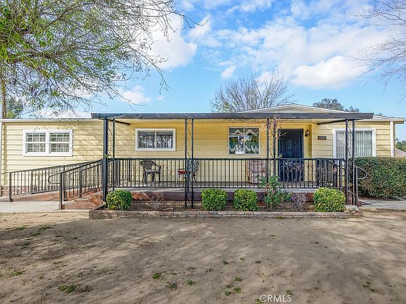 Wonderful opportunity to own your own home on an acre of horse property in Riverside, CA! This cute home offers 2 bedrooms, 2 baths, and a bonus room, too. You'll love the covered front porch that greets you and leads you into the large living room. There is a formal dining area with a built in lighted hutch. The bonus room is about 9 x 27, is ducted, and has a door to the back yard. Down the hall you'll find a laundry room with storage cabinets. The guest bedroom has a built in dresser behind the door, and mirrored closet doors. At the end of the hall is the spacious primary bedroom with full bath. There is a single car garage with added storage, plus an additional shed. You will appreciate that this home offers central air and heat, ceiling fans, and most of the windows are energy efficient double pane. The level lot has ample space for horses, chickens, organic gardening, or perhaps build another house, workshop, or whatever your heart desires. This beautiful home is on a brand new recorded permanent foundation, financing options are available, call for details. Located just minutes away from shopping and dining, this is rural living at its best!