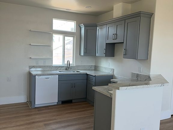 Brand new sinkQuartz countertopsBrand new grey cabinetsFreshly painted swiss coffeeGarbage disposalLaundry hook ups