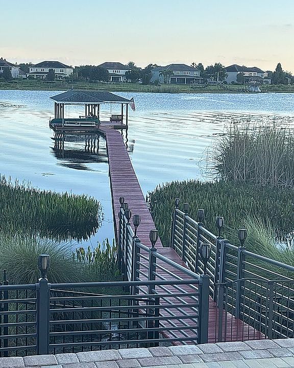 5 bedroom, 4.5 baths on Lake Hancock with covered dock - move in ready! Location Location Location; walk to restaurants, the cinema, putt putt, brewery and more. 3 car garage. Enjoy Disney fireworks nightly. Neighborhood has amenities just as tennis/pickle ball courts, basketball court and more. The neighborhood offers many fun activities through the year. Tiled floors, new carpet upstairs, fresh exterior paint, etc