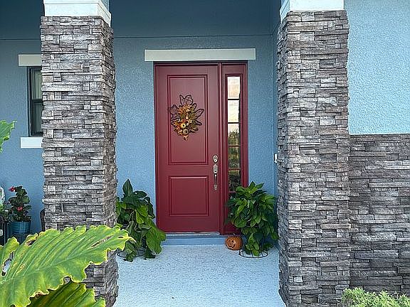- Exterior features: Stone, Stucco, Cement / Concrete