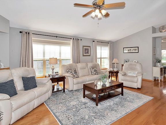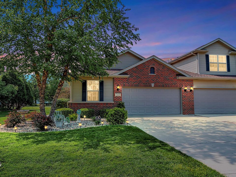 Pride of ownership in this beautiful ranch duplex. When you enter you will love this bright, open floor plan loaded with upgrades. The living room has hardwood floors, fireplace, open staircase to the basement and large windows with custom blinds. The eat in kitchen also has hardwood floors, a large island to gather around and has been updated with granite counters and stainless appliances. Patio doors off of the kitchen lead to the professionally landscaped yard with in ground sprinklers and extra large patio. No rear neighbors as this home backs up to the walking path! The master bedroom has a sitting area, lots of closet space and the master bath has a separate shower and soaking tub. The 2 car garage is heated and has epoxy floors. The laundry room is on the main level with a utility sink! The basement has a large storage room and roughed in plumbing for a future bathroom. Great location on a cul-de-sac st, walking path right out your door, walking distance to town and the train station.