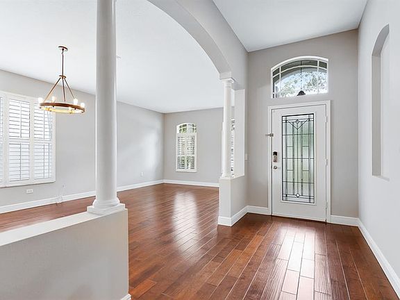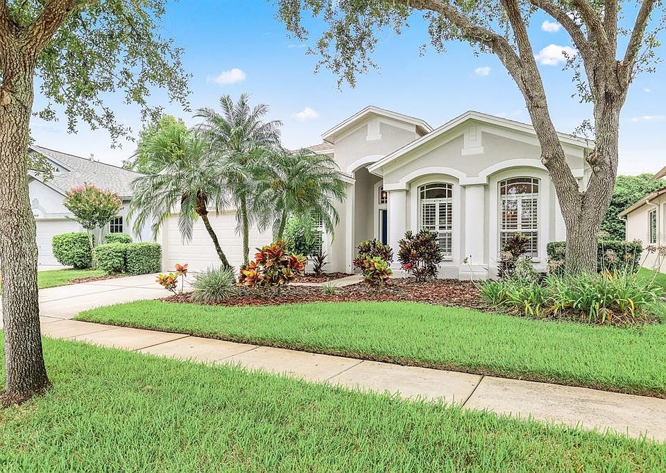 Welcome to this beautifully maintained Suarez-built home, perfectly positioned in the highly sought-after gated enclave of Martin Meadow within Fishhawk Ranch. Offering 4 bedrooms, 3 bathrooms, and a spacious 2 car garage, this residence seamlessly blends timeless design, thoughtful upgrades, and an ideal floor plan that is both functional and inviting. From the moment you step through the custom front door, you’ll be welcomed by a spacious formal living and dining room accented with warm wood floors, decorative columns, and plantation shutters. Perfect for entertaining or holiday gatherings. At the heart of the home, the gourmet kitchen stands out with 42” solid cherry cabinetry featuring soft-close drawers, gleaming granite countertops, a designer backsplash, and stainless steel appliances. A spacious walk-in pantry ensures ample storage, while the breakfast nook provides the perfect spot to enjoy morning coffee. Just off the kitchen, a well-appointed laundry room with cabinets, soaking sink, and a washer and dryer (included with the sale) adds everyday convenience. The kitchen opens directly to the large family room with vaulted ceilings, creating a natural flow for both casual living and entertaining. From here, sliding doors lead to your private outdoor oasis. The covered lanai extends to a stunning screened and pavered pool area, showcasing a heated pool with water fountains, stacked stone accent wall, bubbler, and a sparkling glass tile spillover spa—professionally completed in December 2022. This backyard retreat was designed for year-round enjoyment, from relaxing evenings to lively gatherings. The split-bedroom floor plan ensures privacy, with the primary suite serving as a true retreat. Recently updated with new carpet (August 2025), the suite features a spacious walk-in closet and a spa-like en-suite bathroom complete with a dual sink vanity, soaking tub, and a frameless glass walk-in shower. Bedrooms 2, 3, and 4 are located on the opposite side of the home, with Bedroom 2 also enjoying new carpet (August 2025) and Bedrooms 3 and 4 featuring engineered hardwood floors and a shared Jack & Jill bath. Ceiling fans throughout all bedrooms and the family room add comfort and efficiency. Recent updates add peace of mind, including a freshly repainted interior (2025), exterior paint (2020), new hot water heater (2024), HVAC replacement (2022), and the roof, which will be replaced prior to closing. Living in Fishhawk Ranch means enjoying resort-style amenities at your fingertips. Residents have access to multiple community pools, fitness centers, playgrounds, basketball, pickle ball, and tennis courts, clubhouses, and miles of scenic trails. The community is also home to top-rated schools and is conveniently located near shopping, dining, and commuter routes, making it one of Tampa Bay’s most desirable places to live.
