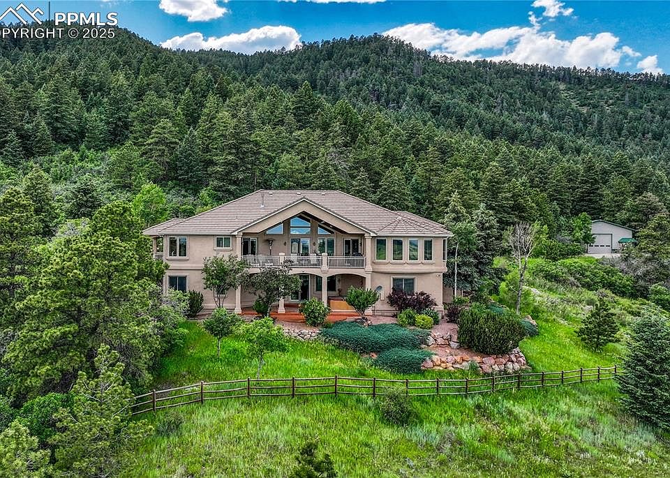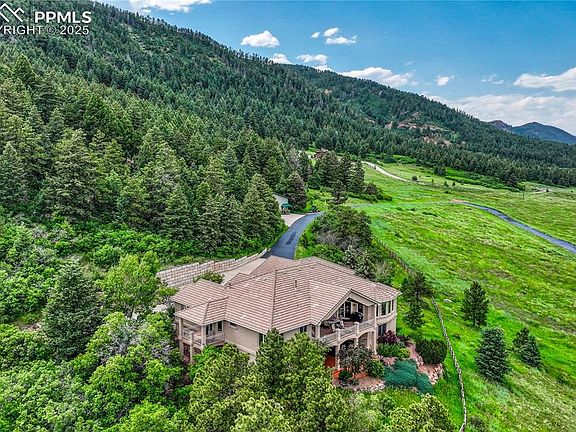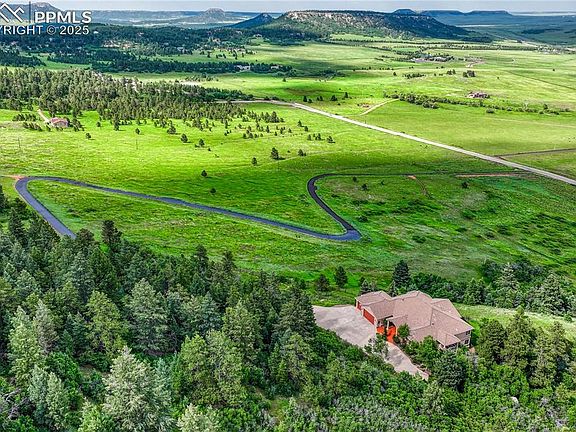 Phenomenal 72 acre ranch with a 6,100 square foot custom rancher perched on the mountain side in South Douglas County right next to Palmer Lake to create one of the most stunning estates available! The only thing on the horizon are endless blue skies and breathtaking views of all of the treed buttes and surrounding mountains. You're surrounded by picturesque pastures, full of wildflowers in the spring, dense trees, hay fields, and rock outcroppings, all begging to be explored by foot or horseback. This quintessential Colorado Ranch feels like Worlds away but minutes from modern conveniences. Located with easy access to Colorado Springs, Palmer Lake, Monument and Denver on year-round maintained paved roads. The ranch has an asphalt driveway leading up from the road to the house. Huge 55x42 RV garage/workshop with electric. The home has been meticulously maintained by the original owner and designed with views at top of mind with an abundance of high quality, large metal clad windows throughout providing awe-inspiring views of the vistas. Expansive room sizes, hardwood floors, two primary suites, 50 year concrete tile roof, new front patio. Great room w/ vaulted ceilings, gas fireplace and a walk-out to the serene covered back deck right off unbelievable views. Main primary suite w/ two closets, a 5 piece bath, sitting room w/ fireplace and private deck. Well designed kitchen w/ gas cook-top, large island, two links, double oven, amazing eat-in kitchen nook with a wall of windows perfectly positioned to take in the surrounding views. Finished lower level with family room, additional primary suite, workout area, walk-out to lower level patio w/ hot tub. Beautiful professional landscaping in addition to the natural vegetation. Quick access to Highway 83 and I-25. No HOA or covenants. Zoned for horses, outbuildings and other animals. Additional 35 acres w/ cabin bordering this property is available for purchase which would be a total of 107 acres with both properties.