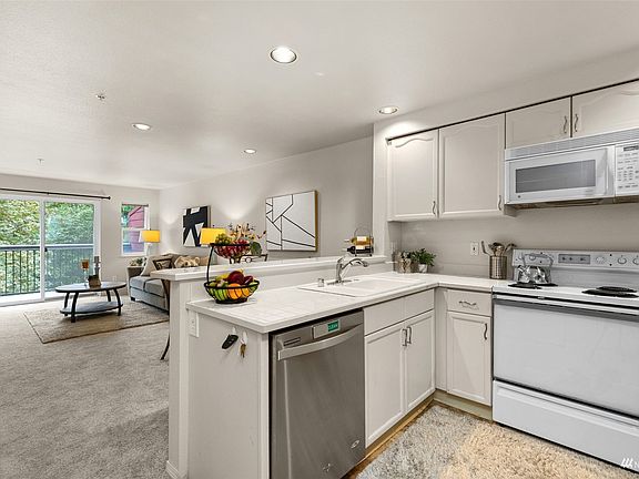 Tucked into the pristine territorial woods of Bothell, this is The Regentwood Community top floor unit you have been waiting for! Updated throughout this unit features a Chef's kitchen with beautiful tile counters & breakfast bar. Oversized living space w/ wood fireplace is perfect for entertaining, updated full bath, and large bedroom/office. The Primary bedroom includes its own private 3/4 bath, abundant closet space, and personal access to the expansive deck space. The HOA is wrapping up a full property rehab (6M+) with new siding, paint, garage doors and more. Top this off with 1 assigned garage space, 1 parking spot, responsible HOA, and unbeatable location close to 405 and Burke Gilman trail. No Rental Cap. Welcome Home.
