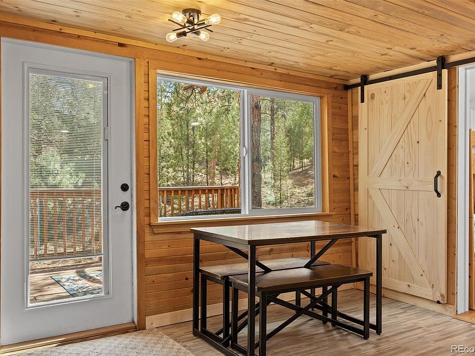 Authentic Colorado living with just the right updates. This rustic mountain cabin on 1 acre invites you to step away from the hustle and find your peace beneath the pines. Whether you're weekend adventurers or looking for a full-time escape, this 1-bedroom + 1 bonus room, 1-bath retreat offers cozy comfort with some solid upgrades. The kitchen and flooring have been updated, blending modern touches with the cabin’s original charm. Step outside to the deck off the kitchen, ideal for morning coffee or stargazing nights. But what really sets this property apart is everything beyond the main cabin:A full sauna on-site to melt away the day’s stresses, a volleyball court setup out back, a greenhouse/shed and I know you noticed the outstanding oversized 22’x40’ detached garage/workshop with a heated and insulated 14’x35’ loft space above—ready for your projects, storage, or creative pursuits. Now for the gritty details: property backs to a private 73 acres, you're at the end of a shared drive for maximized privacy, separate propane tanks (500-gallon for the house, 250-gallon for the garage), each with 200-amp service and 220v hookups. The garage packs a 100,000 BTU heater— keeping you warm no matter where you are. Whether you’re wrenching on projects, soaking in the sauna, or just enjoying the quiet, this place gives you the freedom to do mountain life your way. And seriously—have you seen that garage?